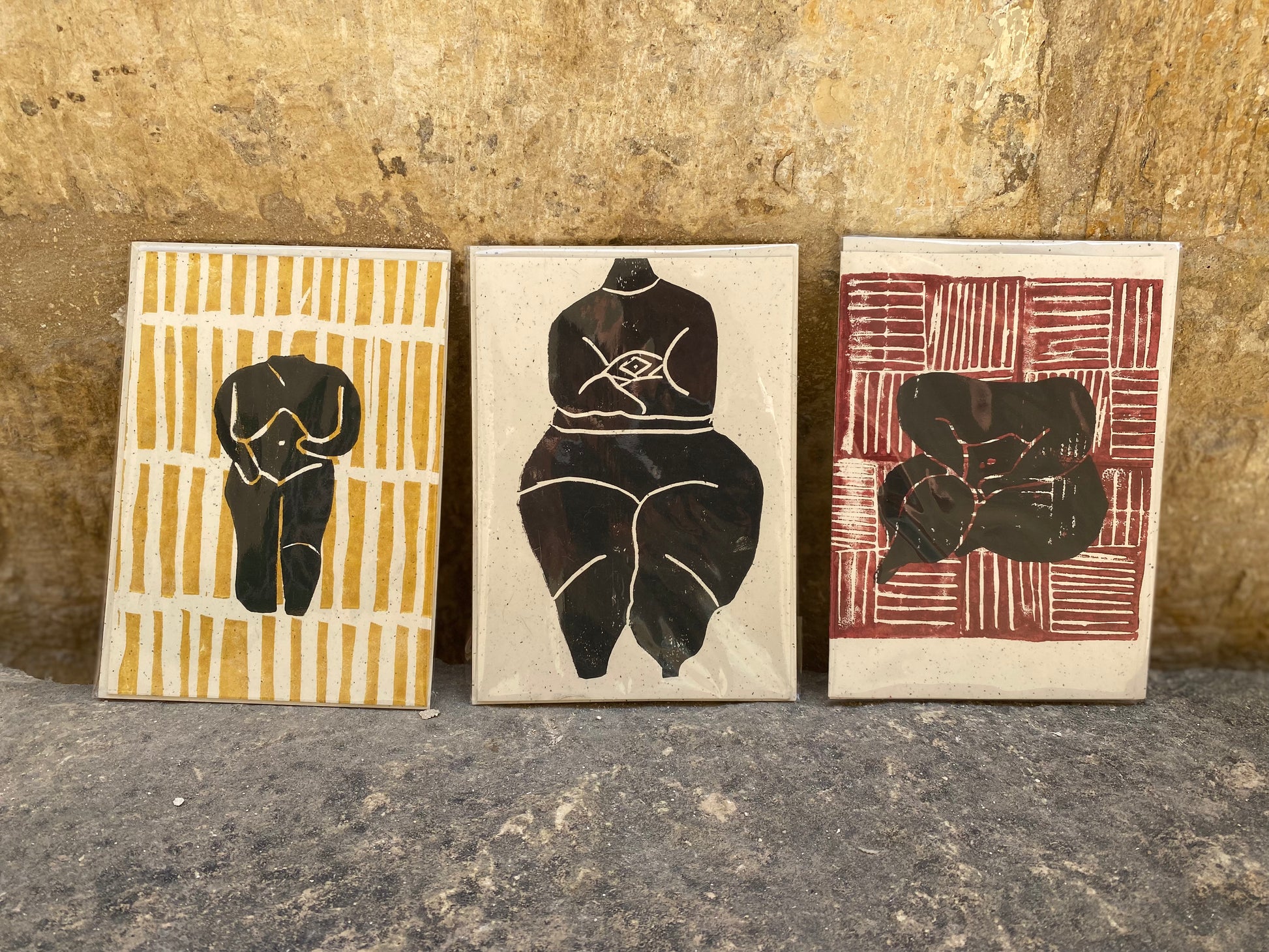 Each card is hand-printed using red ochre and black ink, honouring the goddess figurines discovered in the seven megalithic temples across Malta and Gozo - symbols of female strength, protection, and divine connection to the earth.
