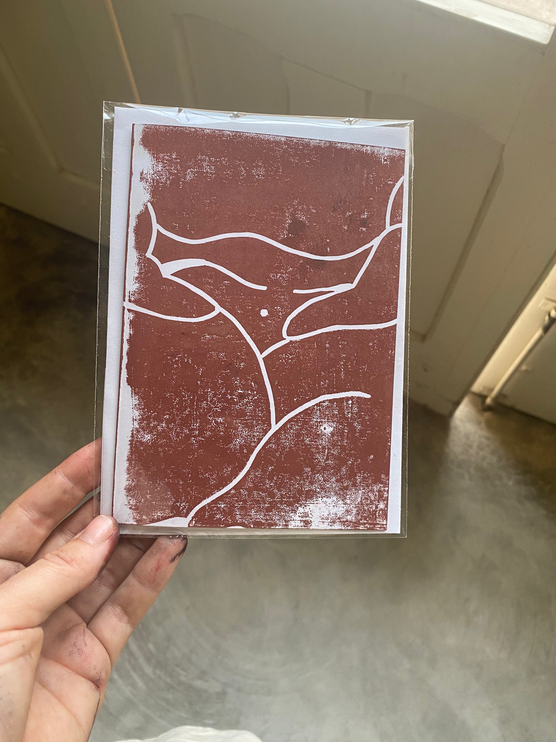 Printed by hand in earthy red ochre, it carries the spirit of goddess worship and matriarchal myth. It’s a card - but also a print. Gift it, frame it, or keep it close.