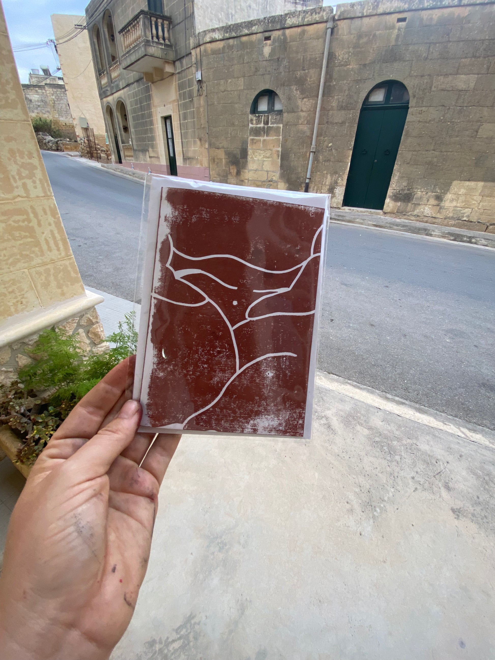 Printed in Red Ochre Ink on Recycled Ivory Card (122 × 172 mm)